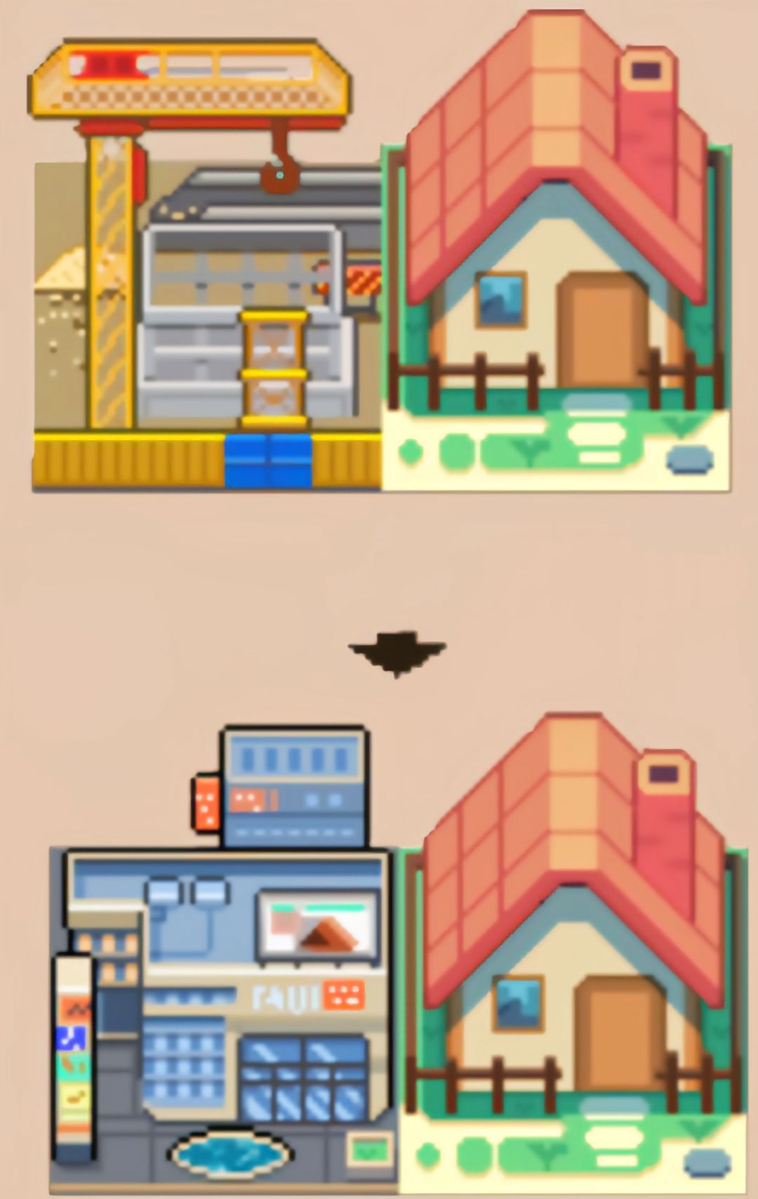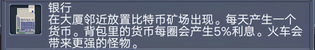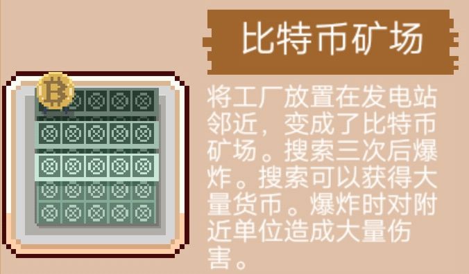 “好!冒险家,问得好!要合成银行得先合成好比特币矿场,比特币矿场需要利用工厂接发电站才可以做好,最后利用两次然后把后面的发电站拆掉放大厦就行了”