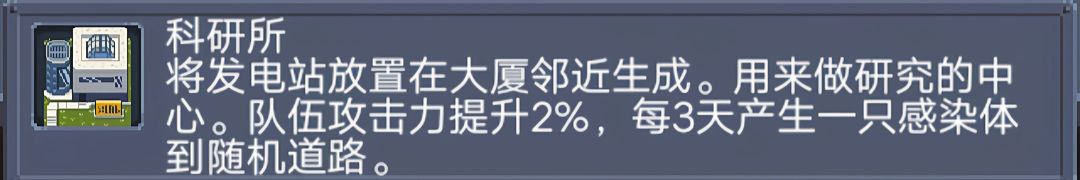 “然后是科研楼,他可以提高你们2%的战斗力”“不过它需要将发电站放在大厦旁边才会出现”