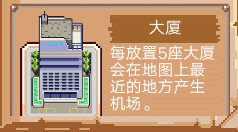 “嗷!冒险家,问得好,机场啊这又得聊到大厦的重要性了,只有放5个大厦才有一个机场,而且如果最后一个大厦周围有一格贴近路边将会直接变成停机坪大厦”