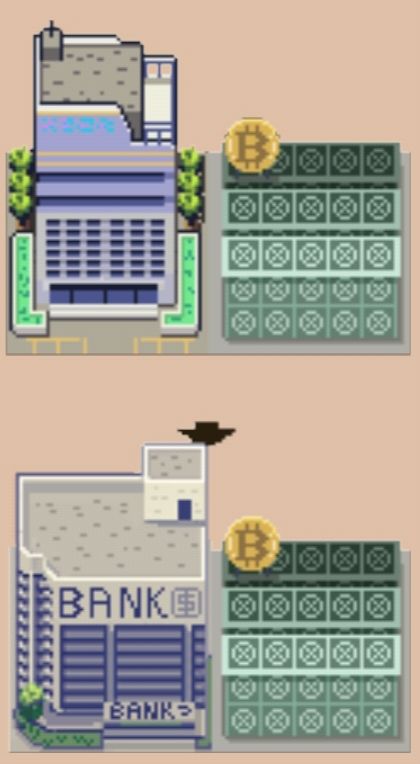 “银行啊?是哦,都忘了告诉你了,其实吧,去用来刷售货机钱还可以从比特币矿场和银行获得。”