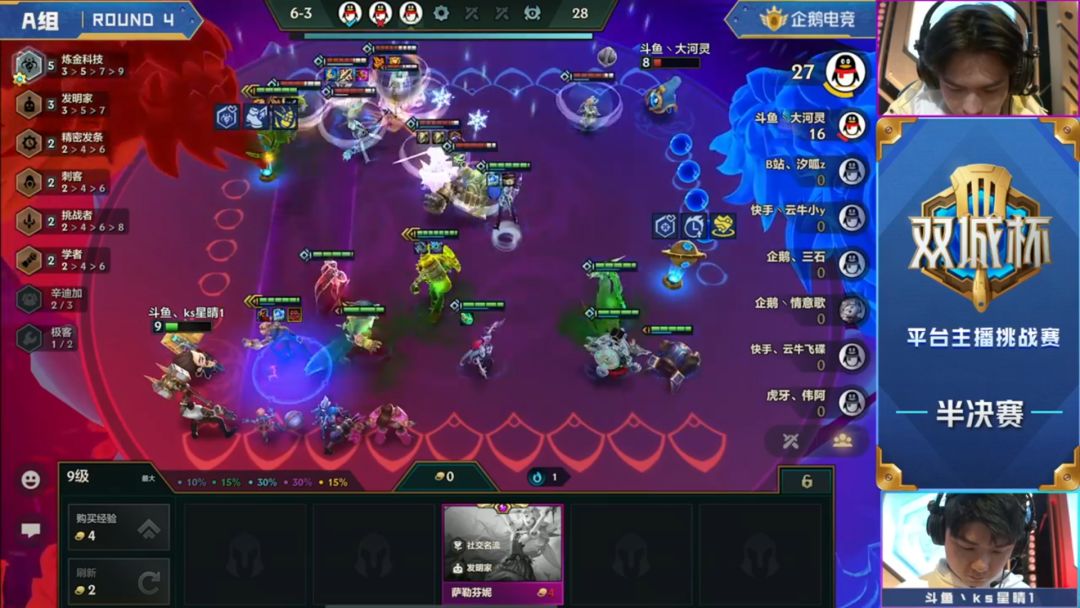 即使外面有三家变异体系的阵容,星晴这局的牌运依旧不错,盖伦、男枪,卡萨丁成功三星,二大嘴也果断放弃了追3,准备速升人口去找杰斯和卡莎。
