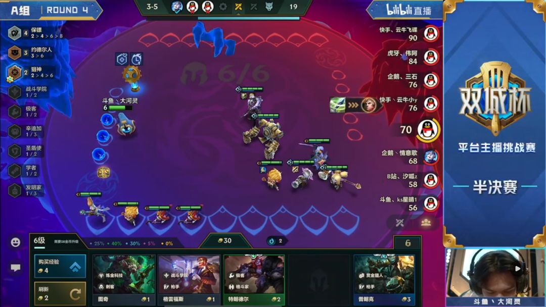 大河灵3阶段小D,终于D出了二星小炮,但是依旧不能起到关键作用,由于这局游戏的前期节奏偏慢,即使前期嫖牌较差,也留给了狙神阵容足够的容错空间。