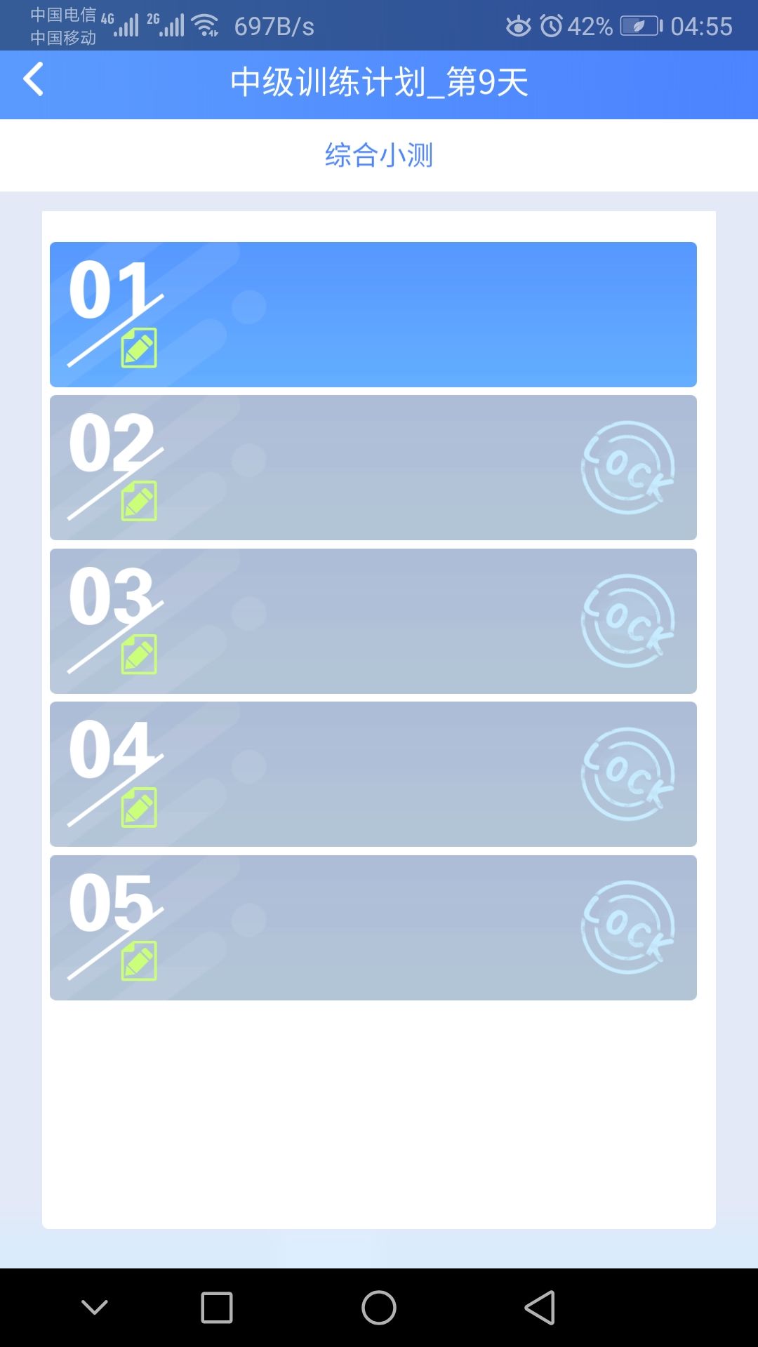 中级训练计划,第九天,第一个测试