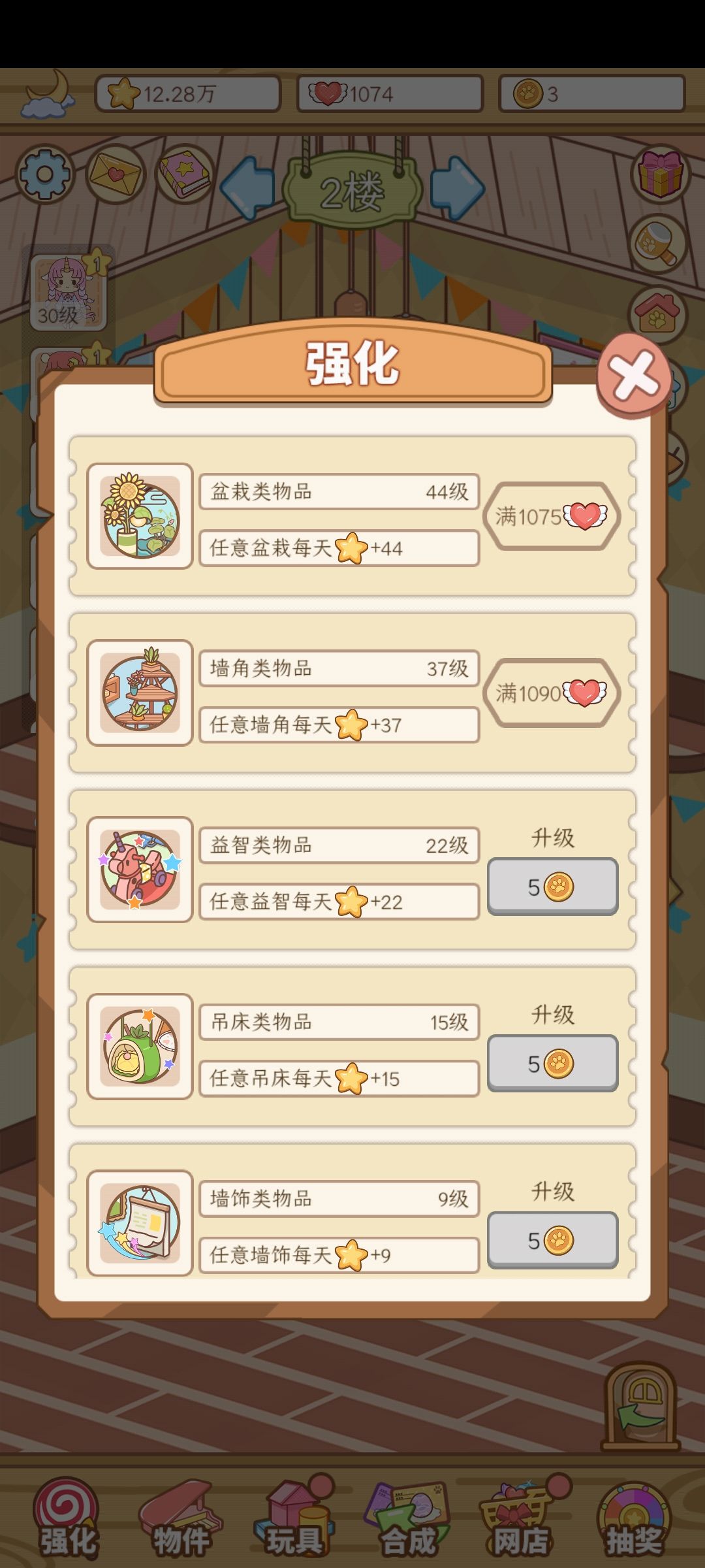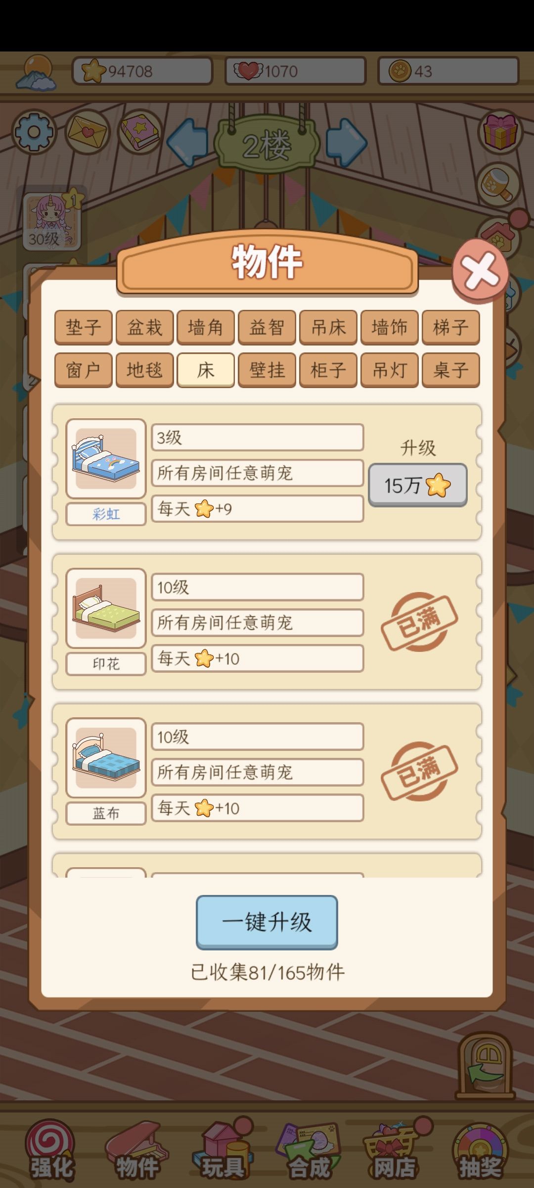 物件升级也是,是用了的才加还是只要有就算?(比如我有5张床每个+10✨,只上场3张,是算上场的3张+30✨还是+50✨?)
