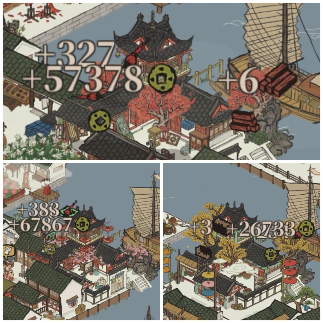 便民商栈和建材商栈的一二档位暂时没有测试,但是根据文化商栈和绣坊的情况可以推测:低档位的掉率一般不会高于高档位,那么12小时/3椰糠、8小时/1椰糠,和12小时/6红木、8小时/4红木的设置下,便民和建材商栈的一二档的效率是不可能高于三四档的。