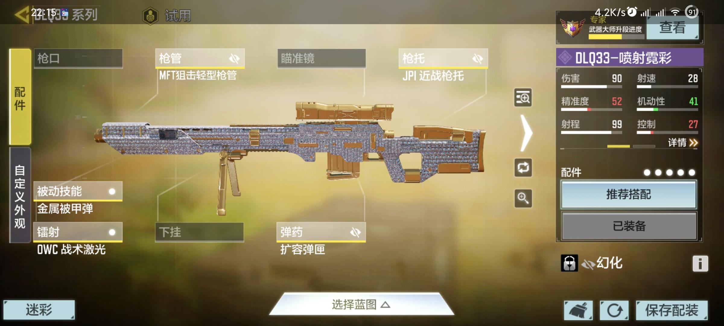 还是之前的bug,dlq33喷射霓彩染钻石皮后贴图bug,在游戏里面瞄准镜还是原色,但是在背包里是染了色的,上次反馈的时候是11月22号还是23号来着,这都快新赛季了还没修复😒