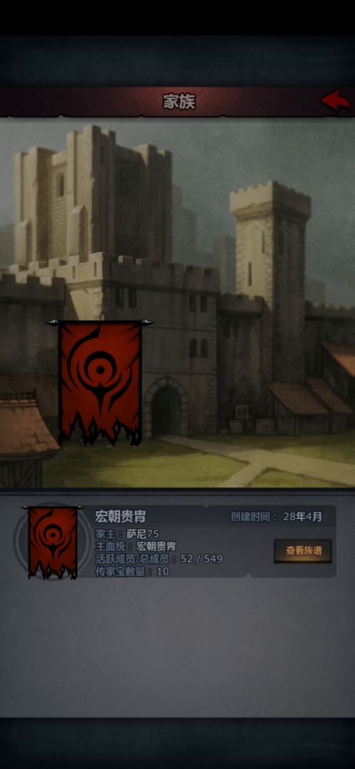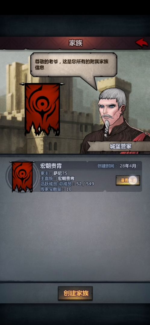 我们来到主界面依次点击城堡_家族_查看族谱_点击一个加号就可以用蓝色品质的武器或者衣服制作传家宝了