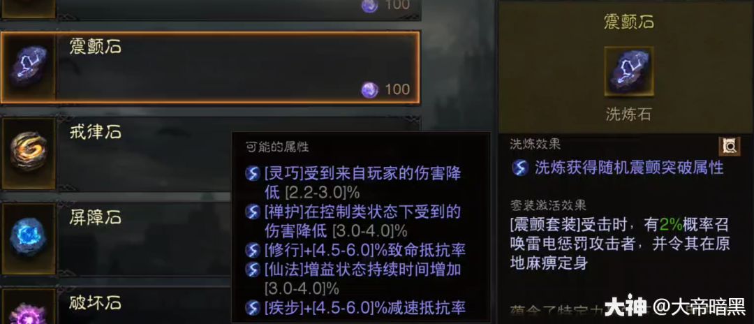 地裂石,这个石头偏控制,所以看你定位是打控制流或者辅助流,可以用这一套石头