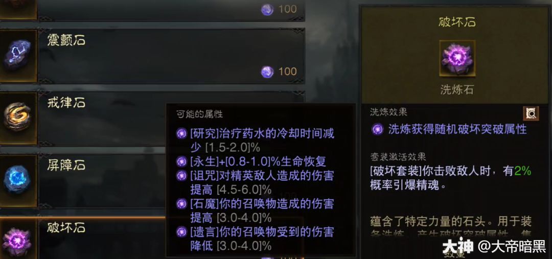 破坏石,很适合死灵(想不到其他职业会用这个了)也只能死灵用,最鸡肋的石头