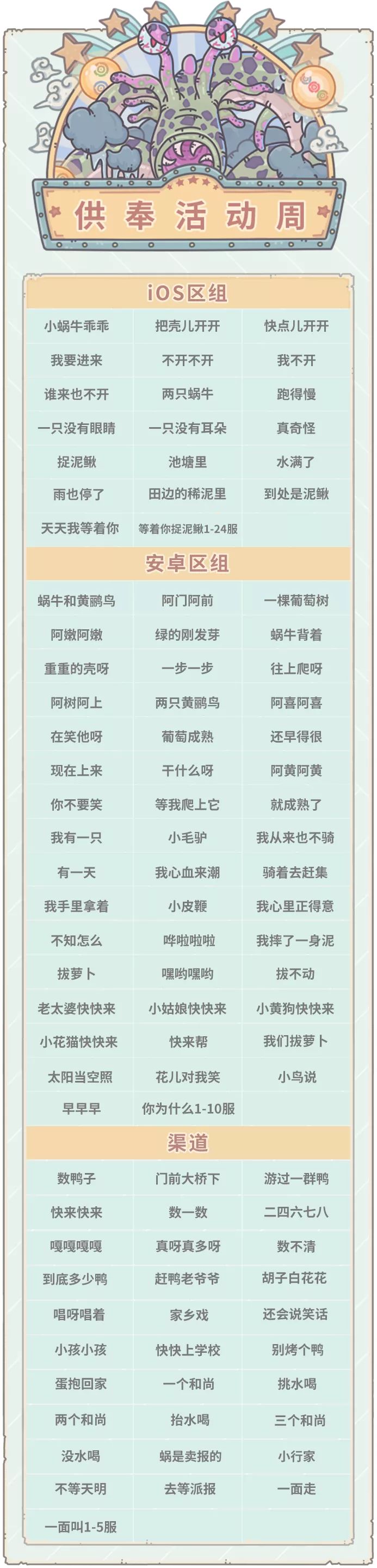 活动期间,触发降神时,概率触发活动限定的降神,玩家可向活动降神提出一些愿望,根据愿望不同获得不同奖励每次活动,最多触发3次活动降神。(具体的愿望内容,请蜗爷们在活动中体验)