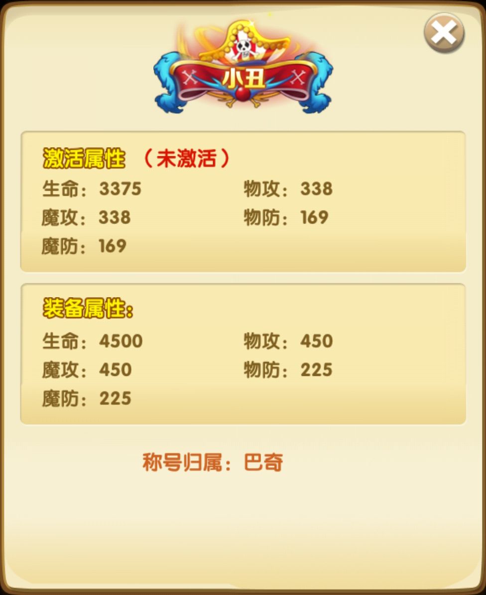 好久没出新称号啦,这次居然是巴奇的“小丑”称号推出,巴奇作为巴奇海贼团船长,海贼派遣公司“巴奇快递”的老板,实力自然是不可小觑的,甚至还在参与顶上战争后全身而退,被世界政府邀请成为王下七武海。