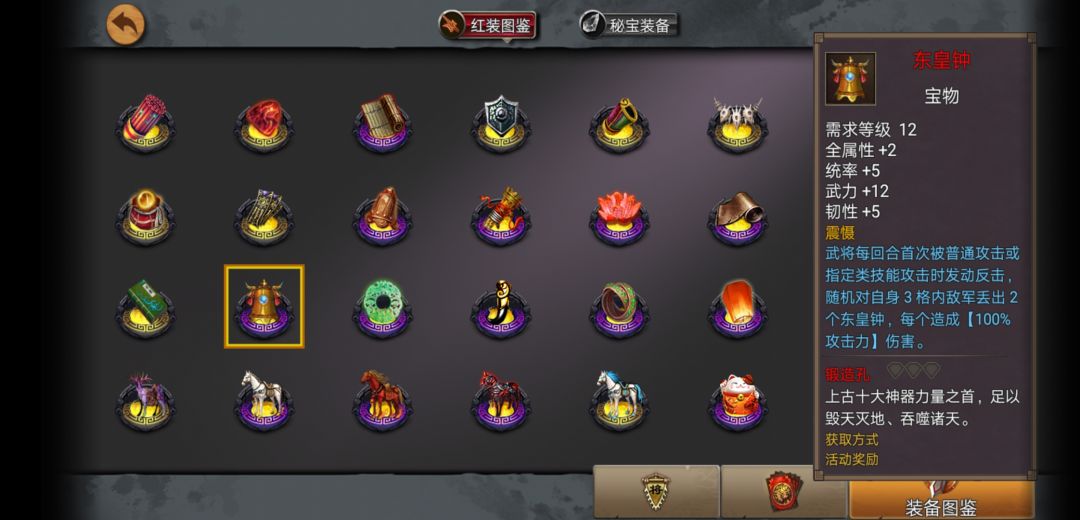 震慑:首次被攻击时丢出2个东皇钟,造成100%攻击力的伤害。