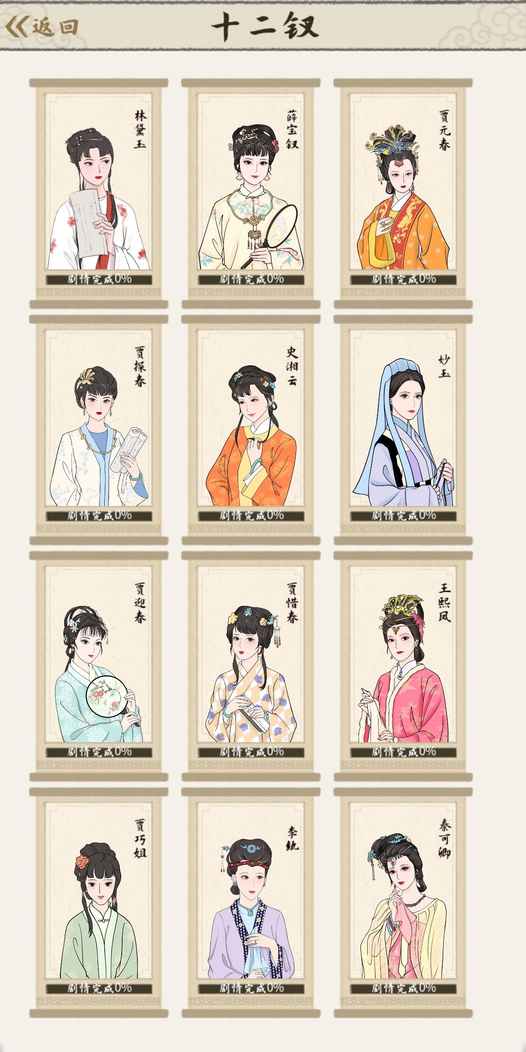 以上便是《红楼梦人生》十二钗功能的介绍了,也欢迎大家在游戏过程中探索重要角色的个人剧情线,并通过”十二钗“页面进行回顾与收集。我们将很多心思放在了对于原著剧情的还原上,也希望各位《红楼梦》小说的爱好者能够喜欢我们的创作,感谢各位的支持。