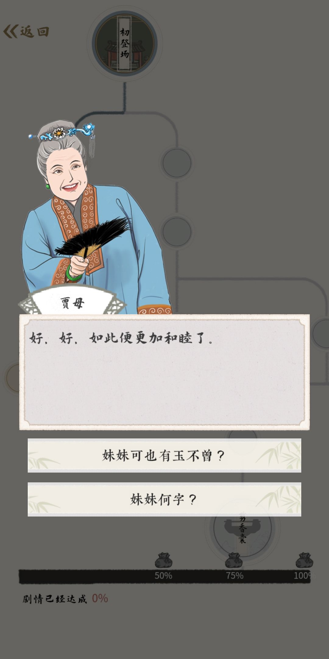 若是在”初登场“时,向妹妹提问”有玉不曾“,会触发“摔玉”剧情,作为后续”剪香囊“剧情的前置条件;而如果向妹妹问字,那就会触发“取字频频”的典故,那在后续内容中更有可能触发“杏帘在望”的故事。