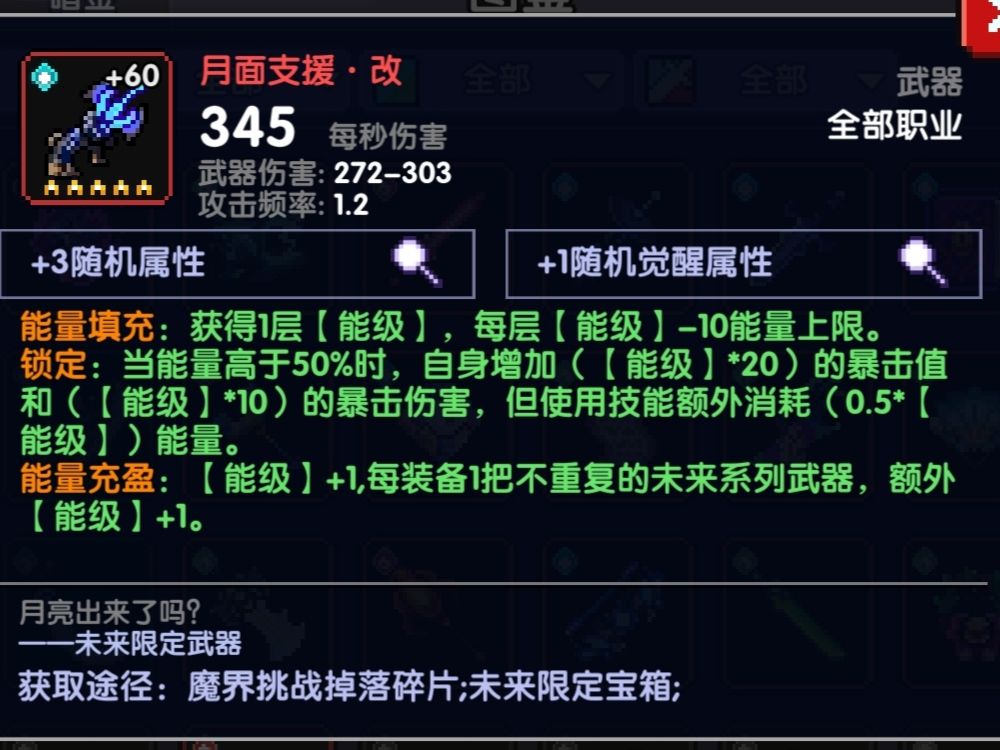 双未来套武器属性:首领伤害,火攻,暴击伤害
