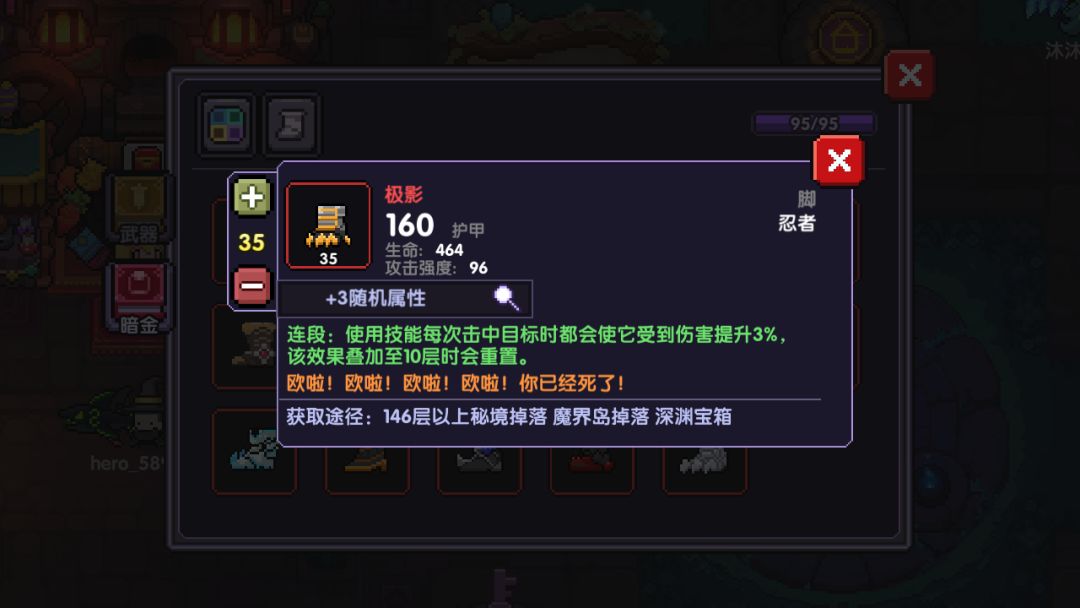 这个看情况而定,大体可以不变的树叶甲和孤儿甲的选择是取决于打单人还是多人运动,带赌狗是因为木忍技能体系改变后可以快速叠出赌狗(当然我无论单人还是多人,赌狗就没上过20层