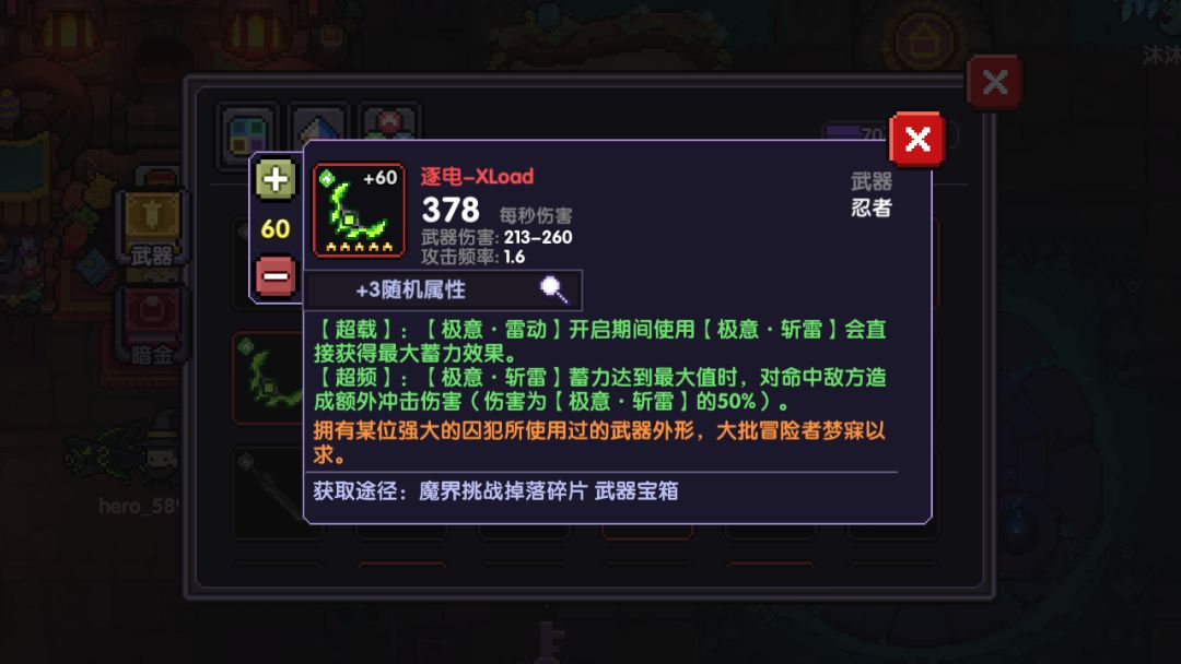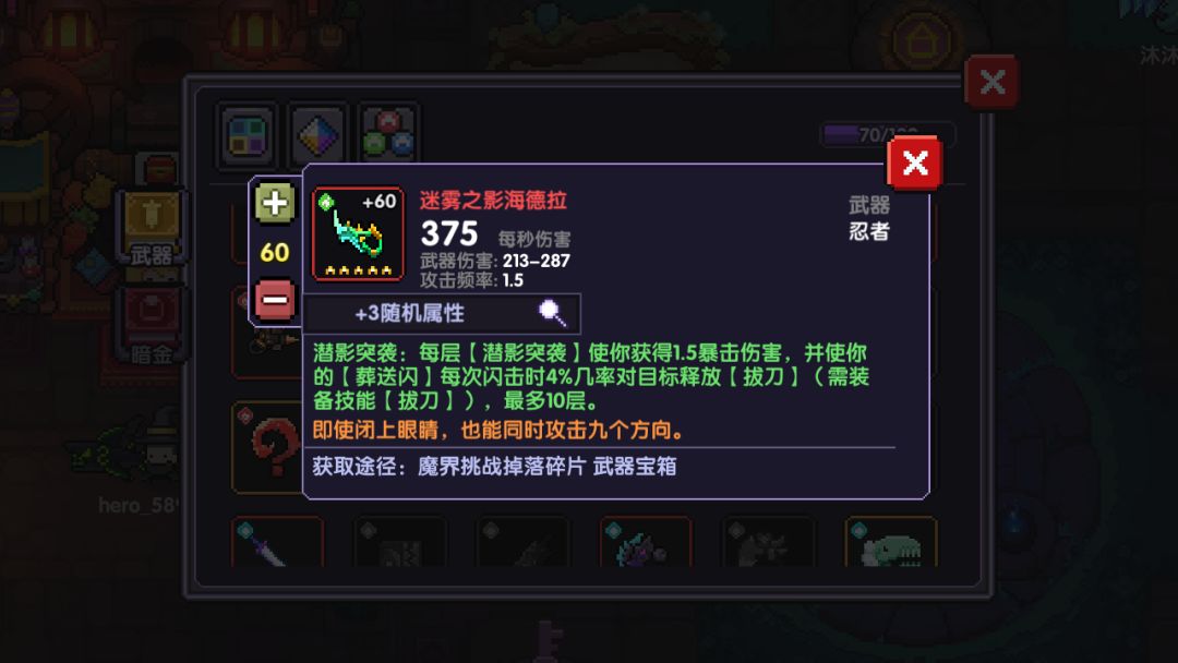 这是木忍打输出的一个必须装备,因为葬送闪可以触发拔刀,拔刀又可以触发800能量的伤害加成,所以这个武器是必须带的