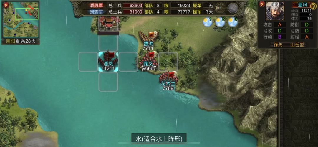 3.主力都带上强行疾行马,带着曹操进攻襄阳,这一战策略是快速移动到最下方城池,围点打援。