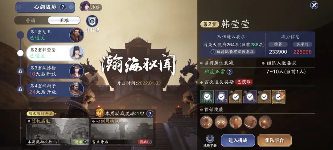 推荐功力:平均功力19.5万以上的队伍可尝试挑战。