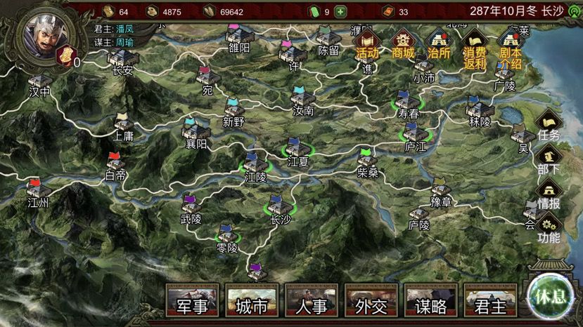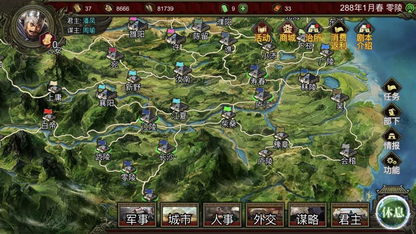 3、此时兵力有八万左右,军师有曹操,司马懿,陈宫,射手三个足够一路平推,没什么难度。