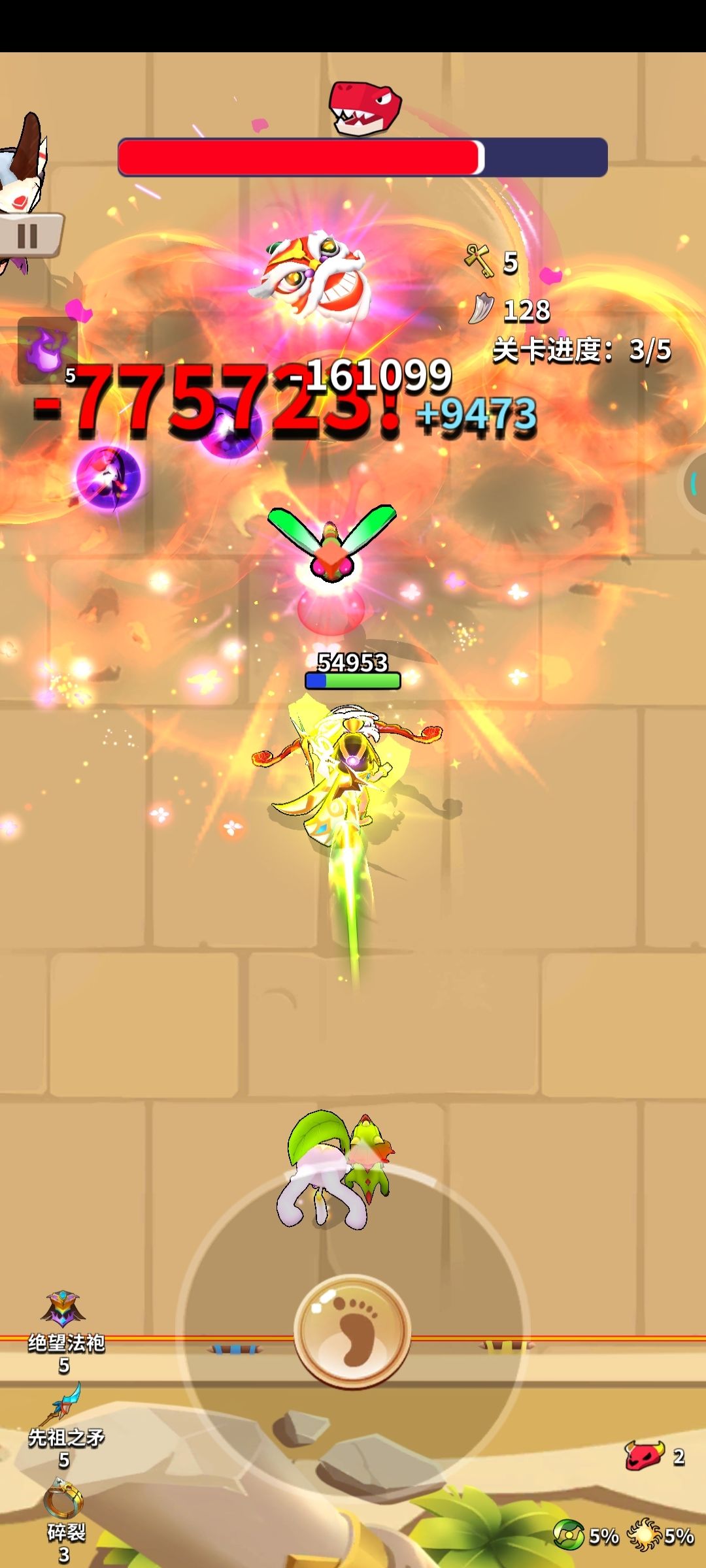【第四关】第四关boss和第三关类似,蝴蝶+榴弹法师,打发也跟第三关类似,靠墙输出,尽量躲子弹,实在躲不了,就尽量输出,先秒掉一个,毕竟最好的防守就是进攻,不然后面也是全屏子弹,基本躲不完。