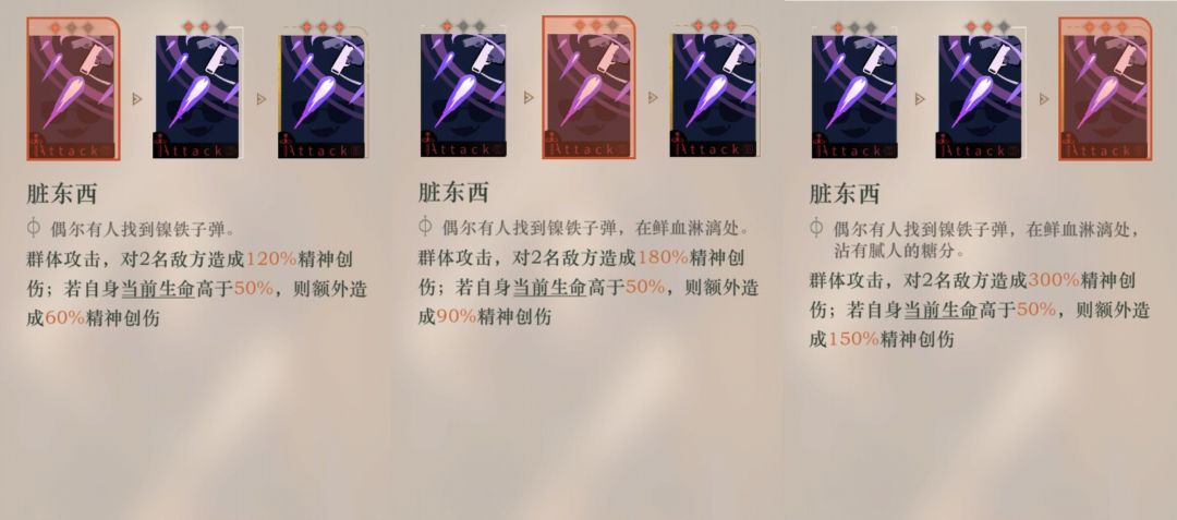 这种攻击牌满足一定条件回有额外效果。但是很可惜,无论有无额外效果,无论额外效果是否生效,所有攻击牌自动出牌的顺序都是高星>最右侧。