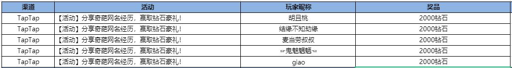随机抽取5人,每人奖励2000钻石;