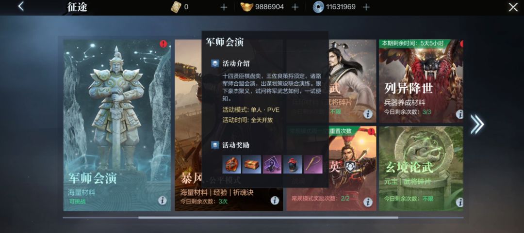 小霸王们在主界面右下方,点击进入征途模式,就可以看到军师会演玩法。