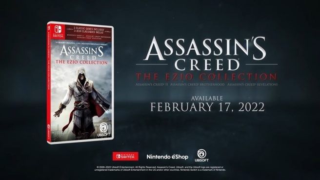 游戏发行商及开发商育碧今天(1月12日)凌晨发布消息,正式宣布包含三款刺客信条系列游戏的《刺客信条:艾吉奥合集》将于2月17日正式登陆任天堂Switch平台。