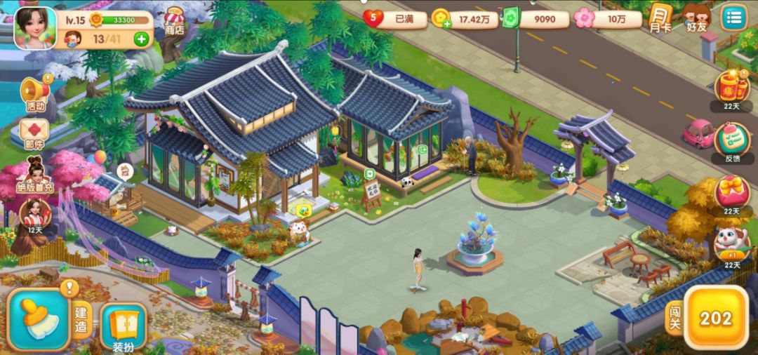 除了联动内容,《花田小院》本身定位国风,不管体现在游戏的整体建筑还是三消元素上,
