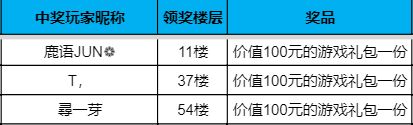 活动结束后随机抽3个抽奖单位各赠送价值100元游戏礼包一份;