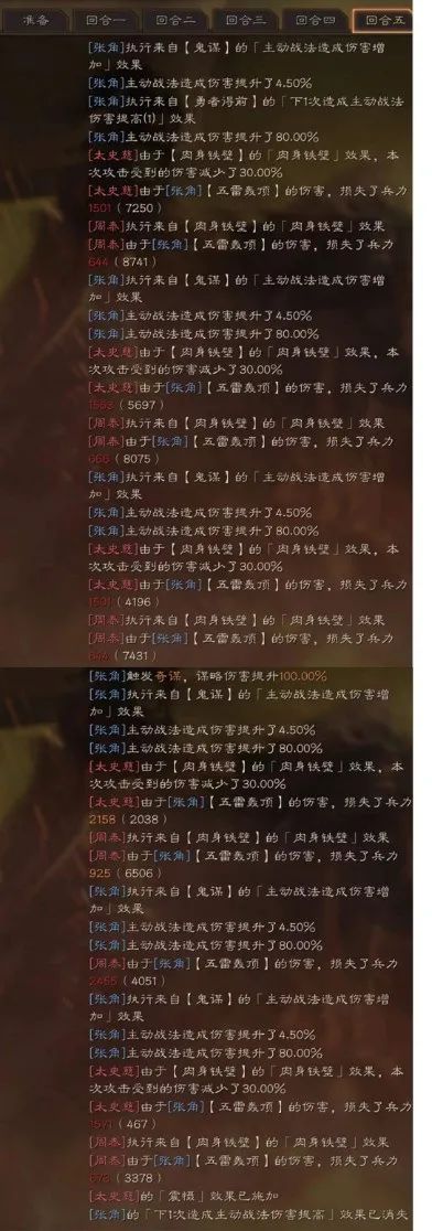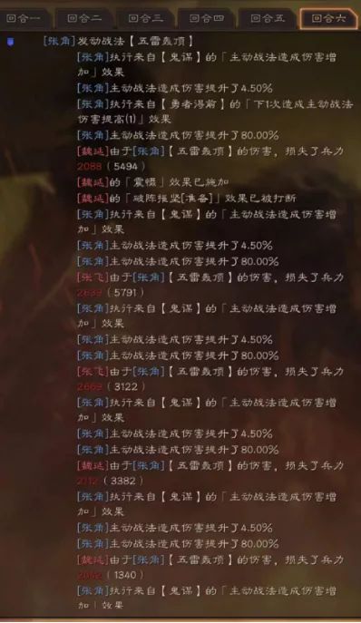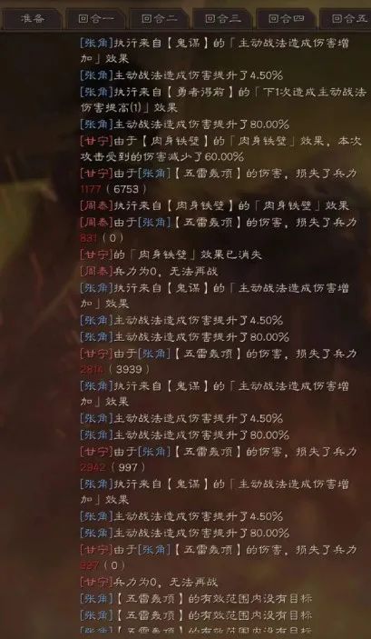 张角五雷轰顶和勇者得前,两个概率都较高,经常会五雷轰顶搭配勇者得前的增伤,伤害瞬间提高,一个回合轰掉对方上万的血是很正常的。