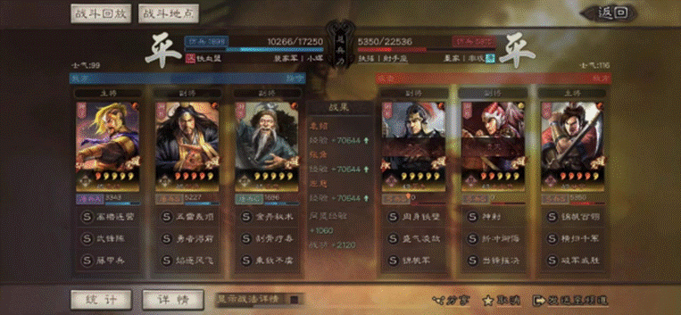 PART 5总结这队的战法整体不占用主流战法,可以作为主力五队之后的备选队伍。战场上躲着点白毦兵和魏骑即可。因为这队有点慢热,所以碰上爆发的吕布也挺难受。当然看到锦帆军、白马(目前大概率还是虎臣)、桃园就可以无脑上了。