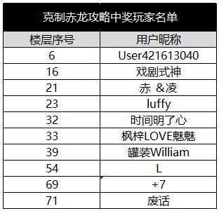 感谢各位小伙伴的热烈参与,以下为本次”克制赤龙攻略征集“中奖名单~