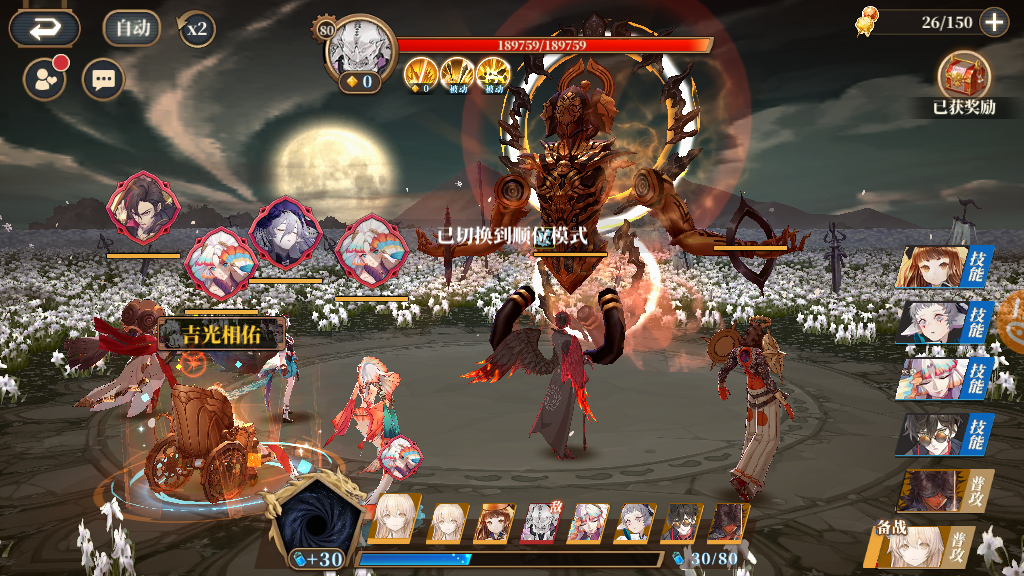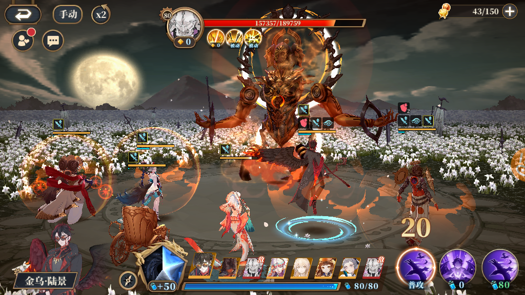BOSS速度在170,15W左右血量会在第二回合插队反击,5蝶陆景的一波80灵气输出伤害在16W左右,(有6蝶陆景更简单,不过只为6000经验花几千万经验升6,想一想有点不划算),所以需要另一个输出普工打掉1W5左右血量。