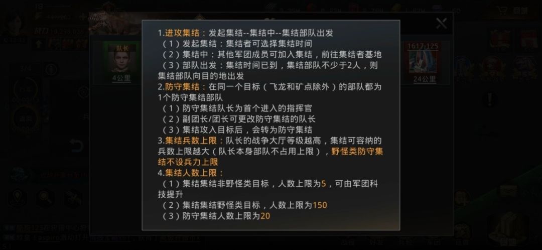 ①打研究所要先建立军团分部,把大家的兵力提前集结到分部,将战争大厅等级最高的队员设置为队长,时间到了直接出发。破防后,同样将战争大厅等级最高的队员设置为队长,将兵力为0的队友遣返,这样就可以同时攻打多个研究所。破防后屏幕上会出现集结的小号角,这时候其他队友直接在号角里加入就可以了。