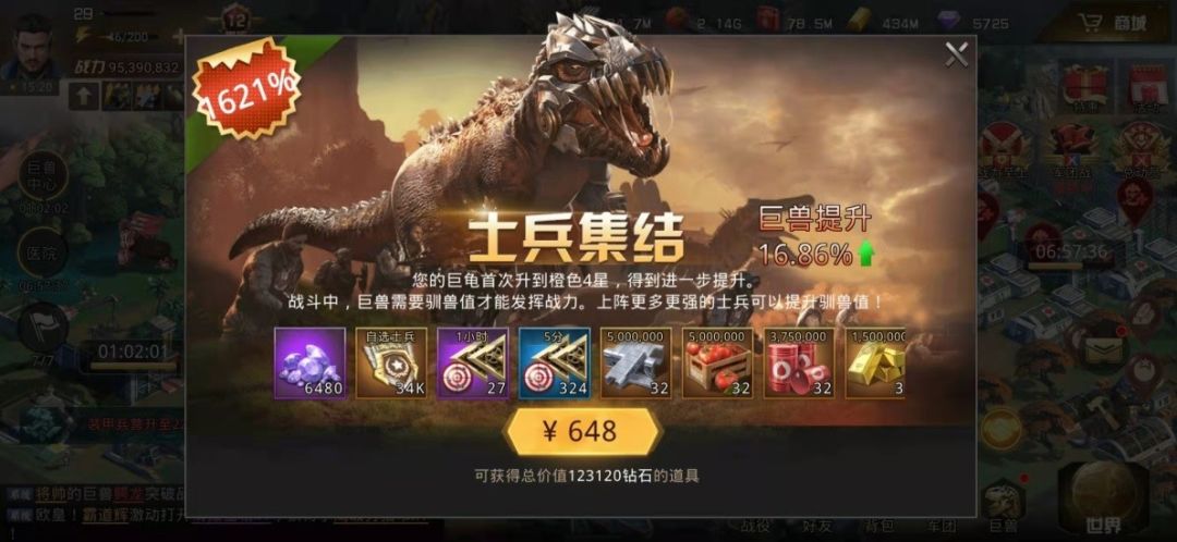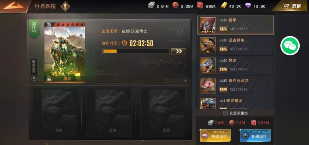 ①如果跟别人打架的话,注意巨兽重伤修复是需要很多资源的。如果是低级龙,可以直接用满血的龙把残血的吞掉即可。但如果是高级龙的话,可以直接买基因修复液。一个基因修复液是80钻,随着龙的等级提升,需要的修复液个数也会增加。