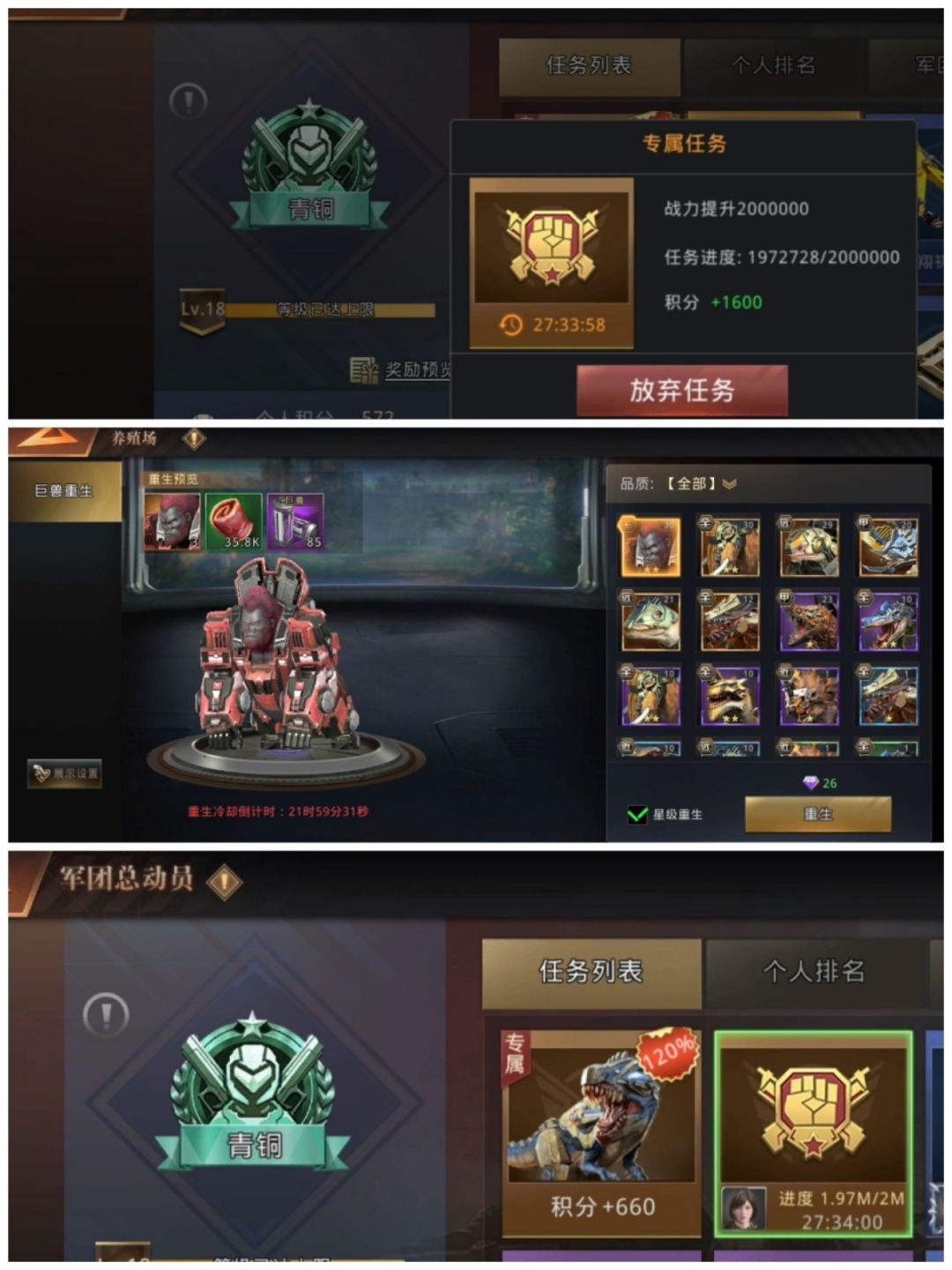 这个只有团长和副团可以操作,需要及时刷新任务,主要刷战力任务和吞噬ssr任务。因为战力增加任务,伤兵恢复也算在内。而吞2个ssr任务不是大佬也可以一天完成一次。