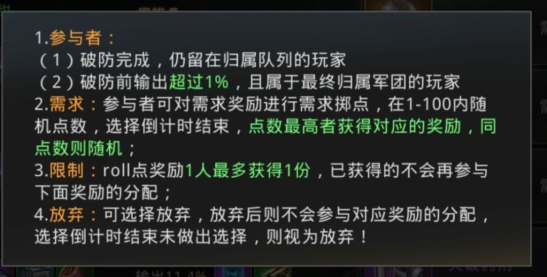 ②巨兽兵团:等级越高,龙越好。roll点的时候要选择自己想要的奖励,不要一键全选,不然就有可能会给你分配到你不想要的奖励。平时的那些需要次数的任务,可以打低级的凑一下。人越多打的越快,单人打要十分钟。