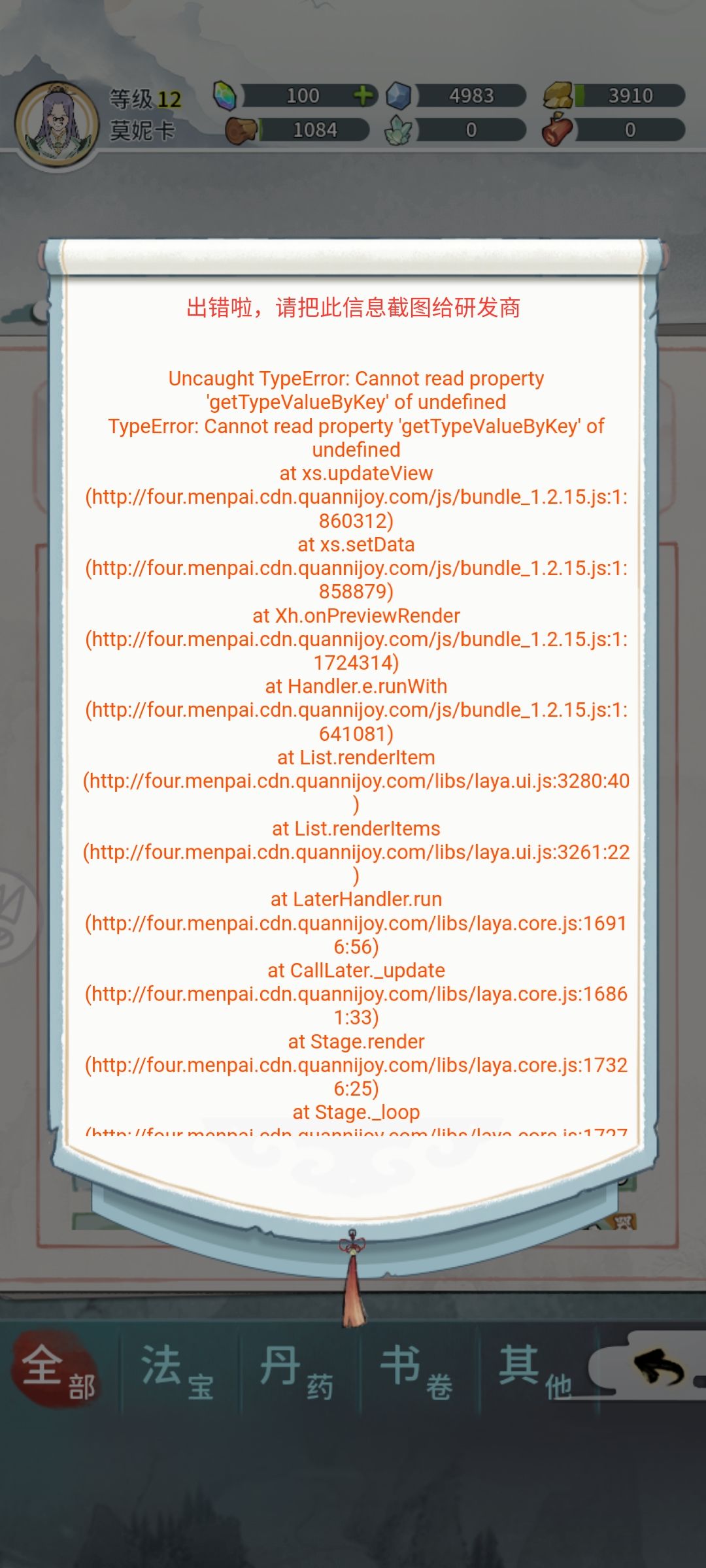 打开宝箱的时候出错