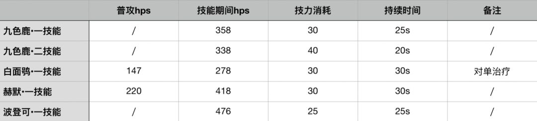 技力消耗不高,可做为补充奶使用,若只依赖九色鹿提供的治疗,则需要把握开启时机