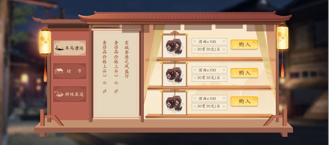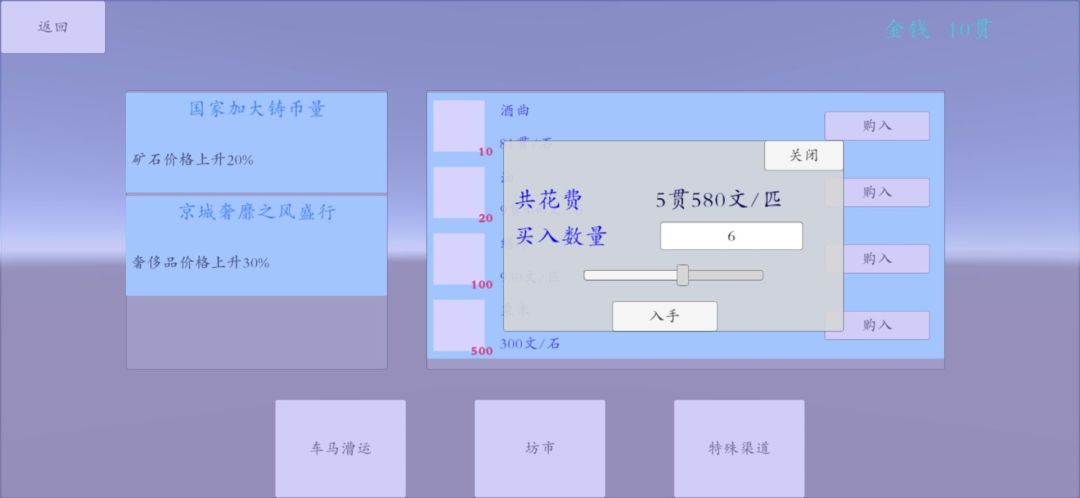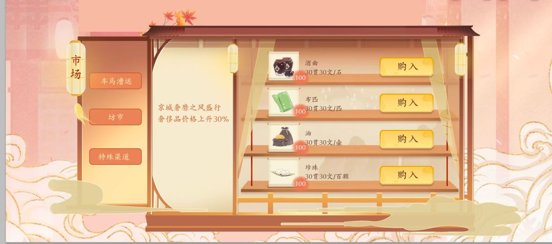 目前做好的是很常见的货物价格波动玩法,接入了简单的排行榜功能,系统结构上是玩家在云京度过2-3年时光,所以最终会有个比拼家产的排行榜功能。设计上也希望可以不经营商会,天天泡在寺庙里最终变成和尚也是一种人生,所以可能也会有个佛法造诣榜(哈哈哈哈)...