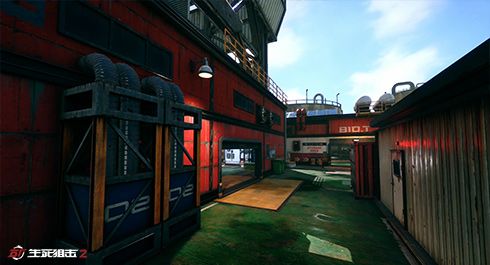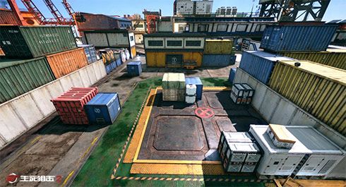 地图整体结构相较于3号矿区更为封闭且复杂,进一步保证阵营双方的对抗平衡性。场景四面环海、暗潮涌动,内部散乱分布着钻井吊索等作业器械、信号接收器及控制器、集装箱体与集装箱房,同索道楼梯一起形成了多层次的空间设计。各式掩体与弯绕小道,极大提高了对战的竞技性与趣味性。