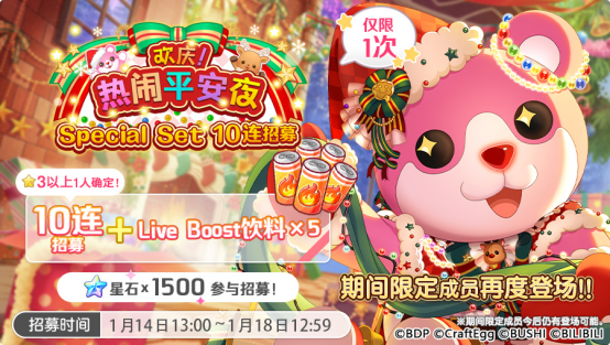 1月14日,游戏内将开启「欢庆!热闹平安夜 Special Set 10连招募」!