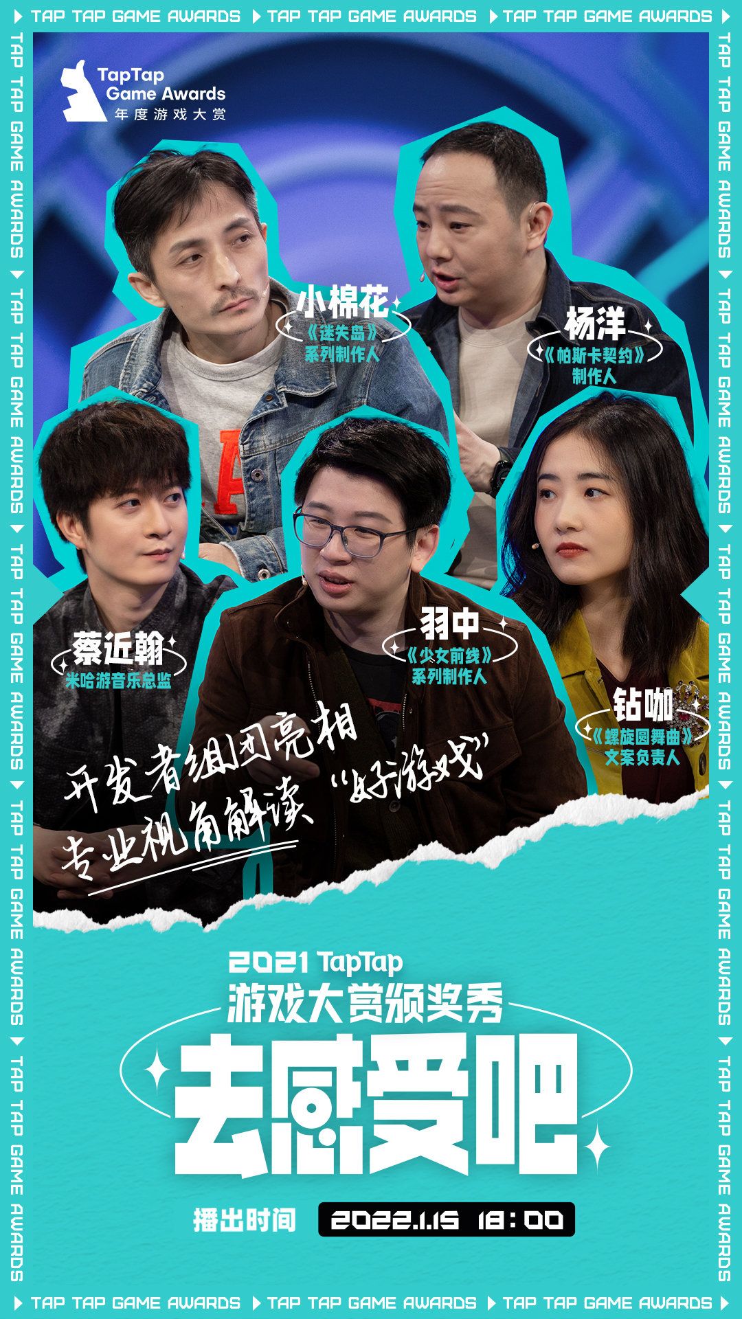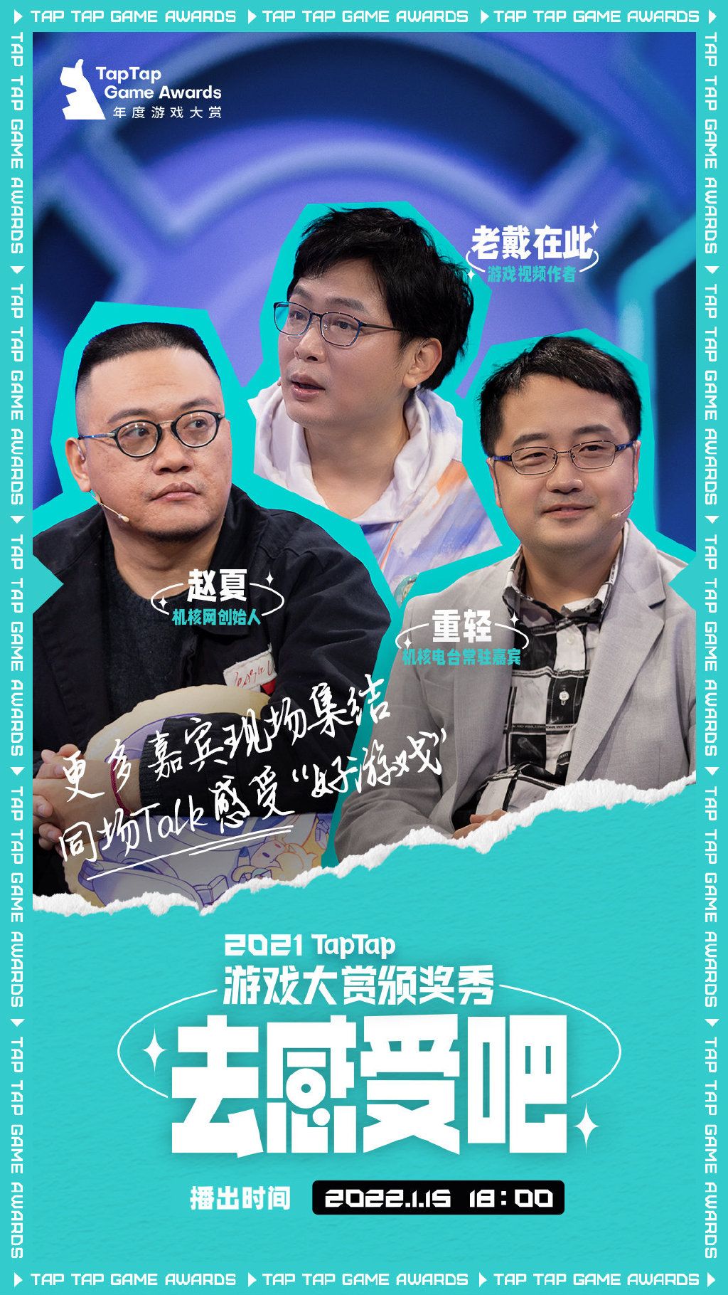 届时颁奖秀会在 TapTap 及多个直播平台同步播出, 1月15日18:00 不见不散!