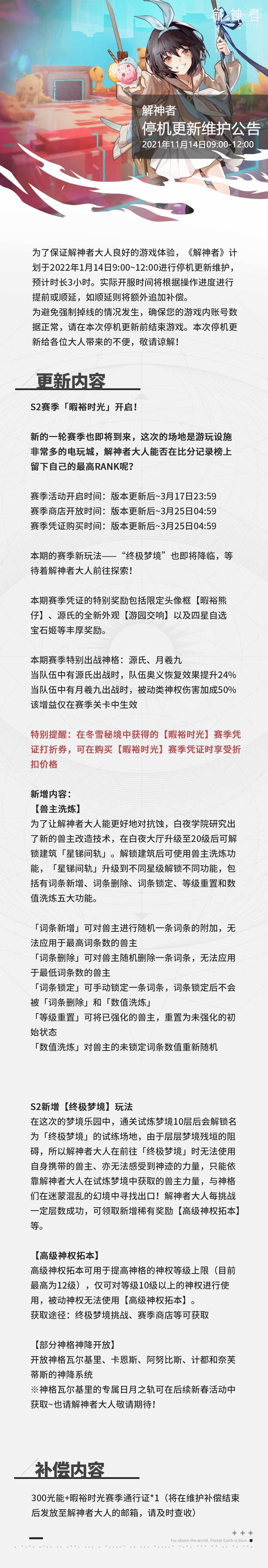 #解神者#★2022年1月14日停机更新公告 ★(๑•ω•๑)