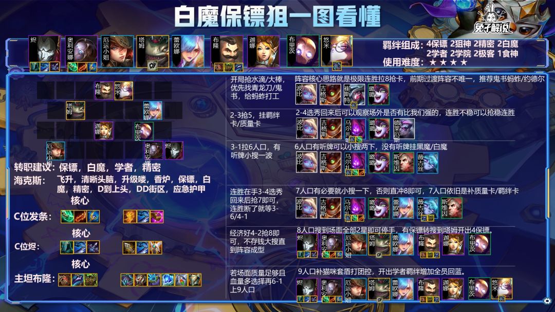 恭喜灰色旺仔!以碾压姿态活的夺冠资格!这盘阵容里面最大的亮点无疑就是灰色旺仔的保镖学者大头!兔子在之前更新的攻略中就明确说了,这个版本可能会有保镖/学者大头成为热门阵容,不出意外,灰色旺仔带着学者保镖大头吃鸡了,阵容强势我想也不用兔子多说了吧,后面决赛圈中,外面是大成的9人口神级海克斯老鼠以及大成的大嘴,大头均以碾压的形式打赢,妥妥的新晋版本T0了,不过这句黑色旺仔的保镖学者大头有点胡烂了,转职太多了,正常情况下基本都是4学者+4保镖的大头,所以他开出6学者+4保镖实属过于强力了,但是初步预估没有转职的学者大头应该是强度不会少多少,今天比赛结束后,兔子会找机会专门做一期学者大头的攻略供兄弟们参考,目前来看运营节奏核心依旧是3约德尔,依靠约德尔刷出3星波比然后在7人口卡利息慢慢找3星大头,不过有一点要提的就是通过4天的比赛看下来开局有3约是必要的,即使一胜一负三约也是可以吃的,主要用途不光是刷质量还能慢慢蹭经济,所以说3约开无疑就是开局答案了,无论是重秘还是白魔狙还是黑白魔又或者是大头,都可以凭借3约德尔的体系卡慢慢转阵以及凭借3约德尔慢慢刷质量,兄弟们开局有三约可千万要留下再摇摆呀!