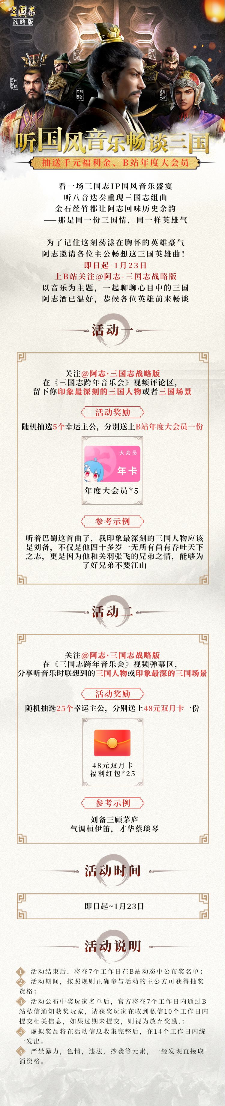 前往视频评论区留下你印象最深刻的三国人物或者三国场景,还有机会抽送千元福利金,B站年度大会员~