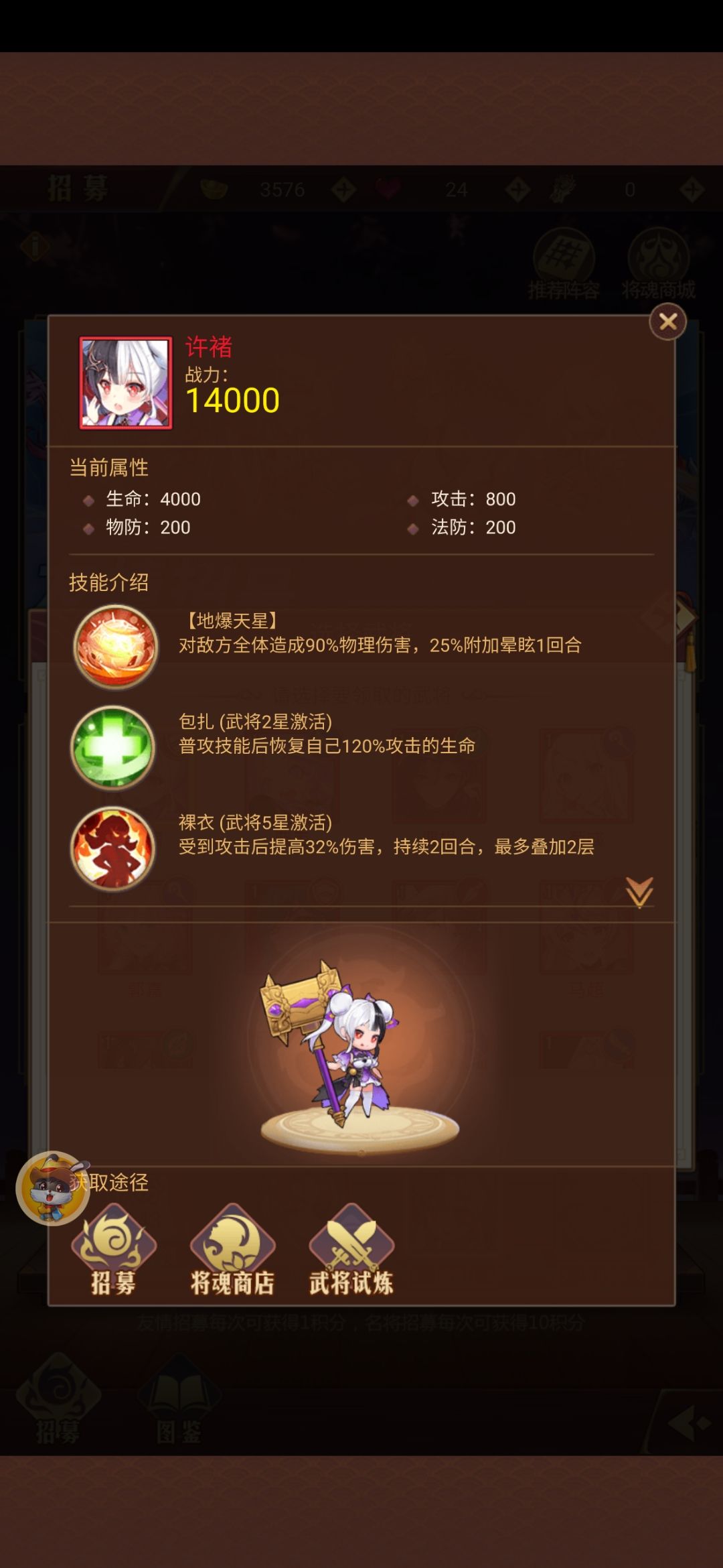 2、典韦,单体强攻,附增伤的debuff,但是优先防御最高的。基本就是前排推土机了。不愧是一吕二赵三典韦,牛批(稍微氪6块的张飞是真tm硬。有了典韦怼她就行了)