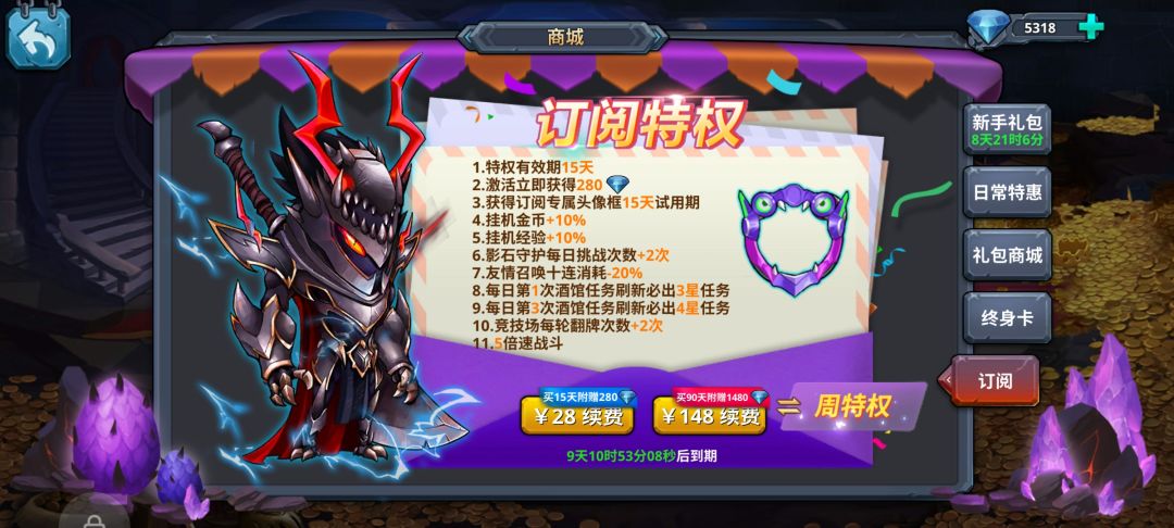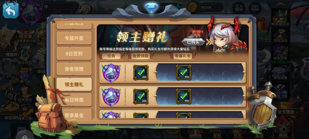 其次就是订阅特权每日8元礼包还有领主